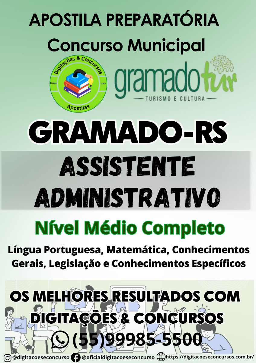 APOSTILA GRAMADOTUR/ASSISTENTE ADMINISTRATIVO - RS